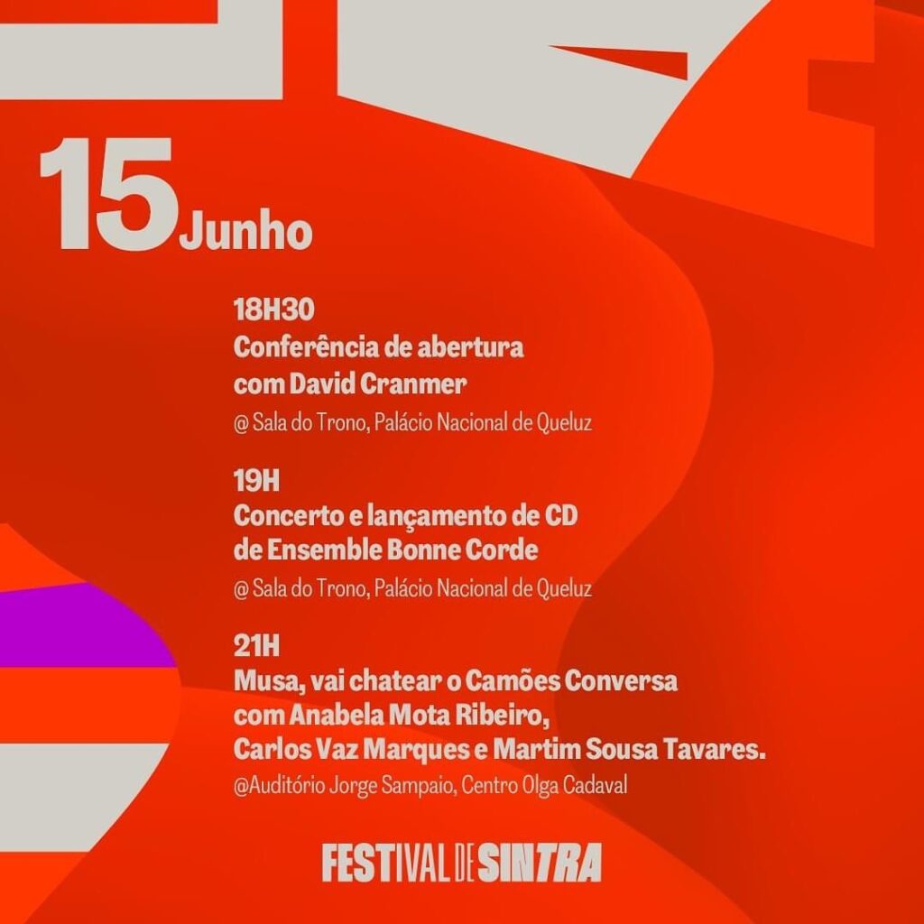 Recorde-se, o 57.º Festival de Sintra, este ano sob direção artística de Martim Sousa Tavares, é uma organização da Câmara Municipal de Sintra e tem lugar de 15 a 25 de junho com programação variada que oferece concertos, cinema, dança, espetáculos para famílias e infância, palestras, workshops e outros formatos.