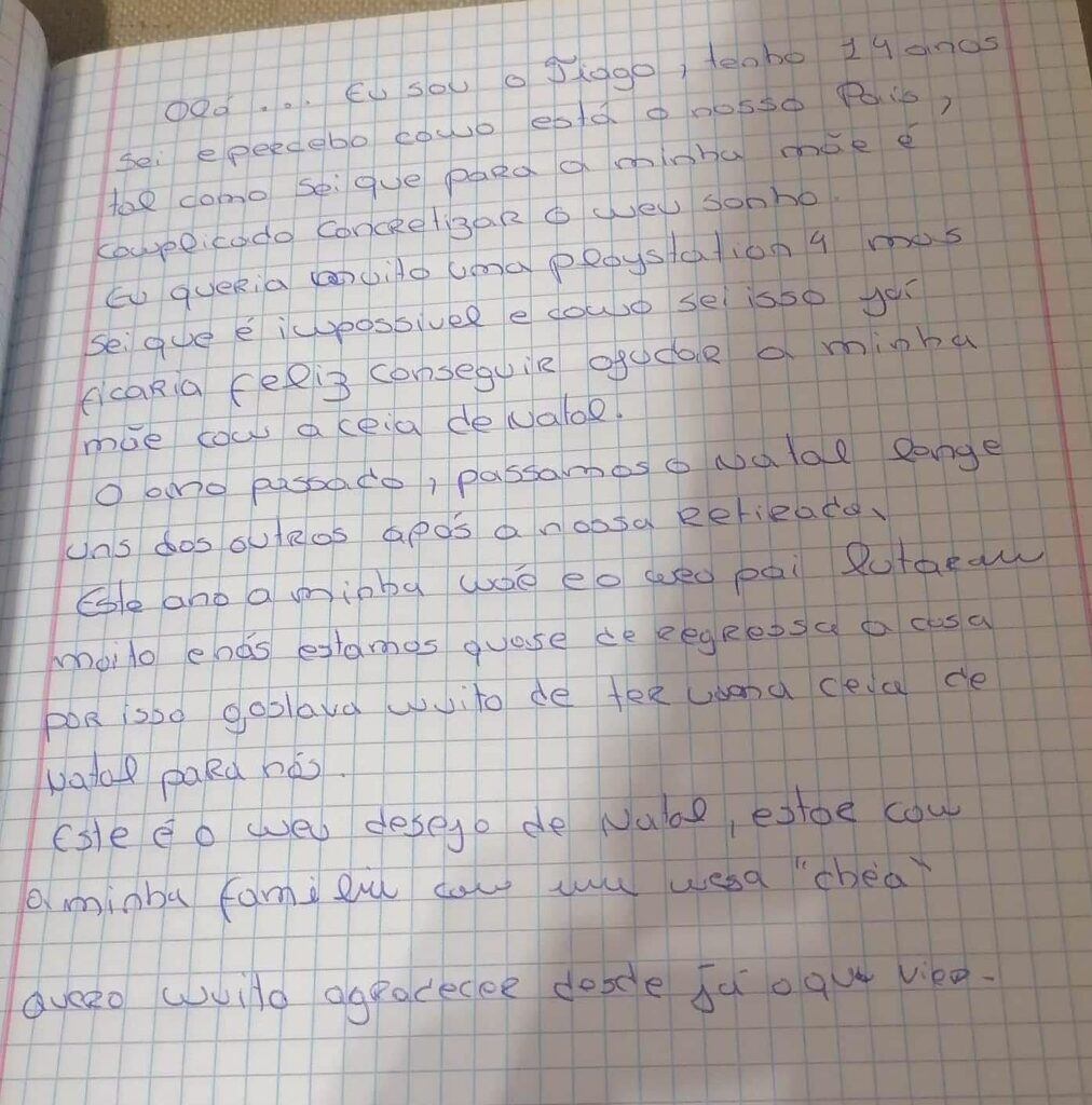 “Vimos frigoríficos vazios, roupas estragadas, falta de alimentos essenciais” e o coração começou a falar mais alto. “Já não era o responder à carta de uma criança, mas se possível, dar algum conforto à família”.
