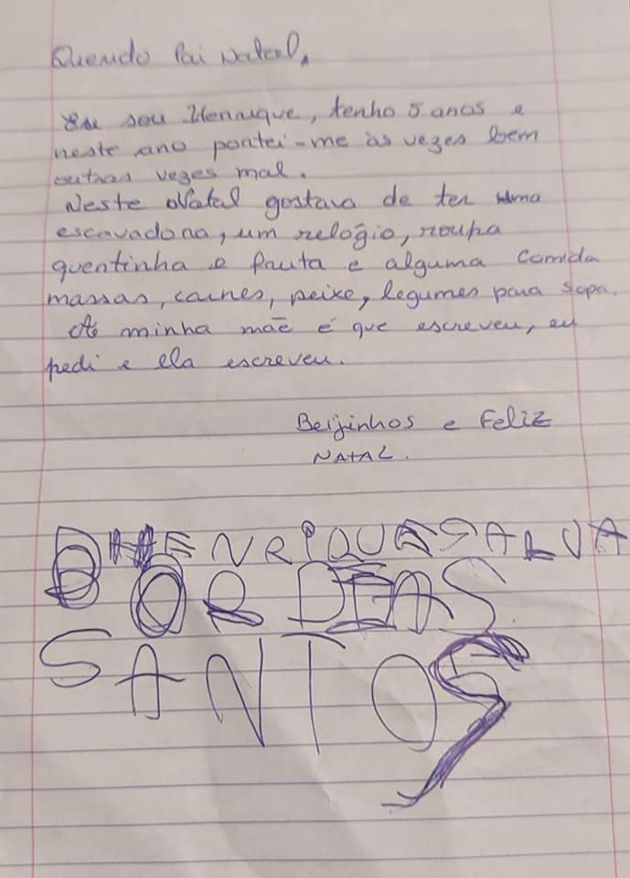 Sem perda de tempo, foi criado um Grupo na página de Facebook, “Querido Pai Natal” e em poucos dias “comecei a receber cartas de crianças ao Pai Natal. E houve logo quem se oferecesse para um presente” refere Fátima Luz, acrescentando que “esta era a ideia inicial do grupo, que logo se apercebeu que havia lares em que não era só o presente da Natal que faltava”. Talvez por isso, as cartas não serem todas iguais porque as crianças nem todas nascem no mesmo berço.