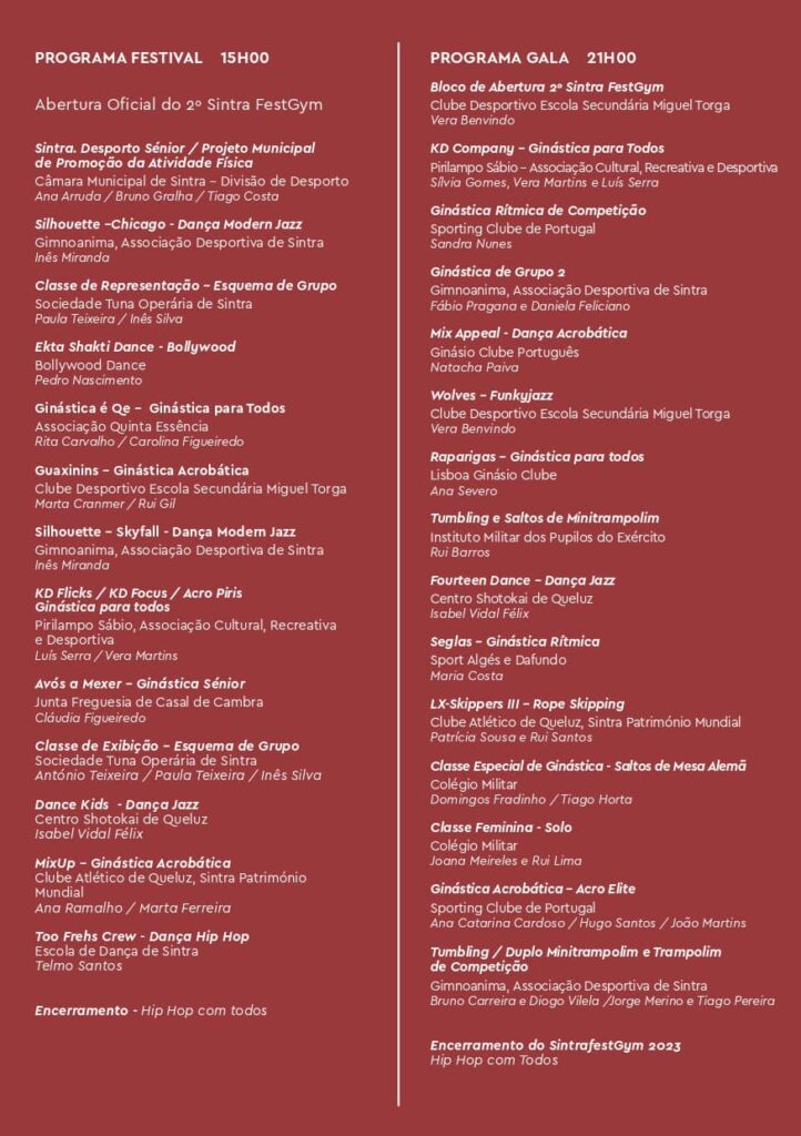 O Sintra FestGym é um programa vasto e diverso com a demonstração das diversas disciplinas da modalidade, como ginástica para todos, ginástica artística, ginástica rítmica, ginástica de trampolins, tumbling, ginástica acrobática, ginástica aeróbica, team gym e ginástica solidária.