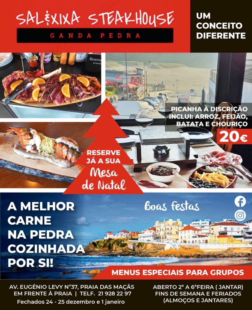 O “Sal & Xixa Steakhouse” é um restaurante com um novo conceito onde a melhor carne na pedra, em especial a picanha é cozinhada por si. Para alimentar a alma, dispõe de uma vista fabulosa para a Praia das Maçãs. Está aberto de 2ª a 6ª ao jantar e aos fins de semana e feriados, ao almoço e ao jantar. Bom apetite!