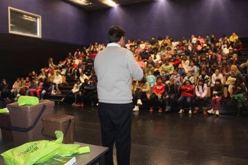 Em Massamá/Monte Abraão, na Escola Secundária Miguel Torga, cerca de 80 alunos não perderam pitada da apresentação do sistema de valorização de resíduos orgânicos e, no final, sucederam-se as questões sobre o que podia e não podia ser colocado nos sacos verdes. O objetivo do “passa a palavra” subjacente a estas sessões, como enunciou o técnico de sensibilização ambiental, Pedro Oliveira, parece que vai ser facilmente alcançado, dado o interesse demonstrado pelos jovens. Além do diretor delegado dos SMAS, Carlos Vieira, também Pedro Brás, presidente da União das Freguesias, fez votos para que os alunos levem a mensagem em prol do Ambiente a todos os membros da comunidade educativa.