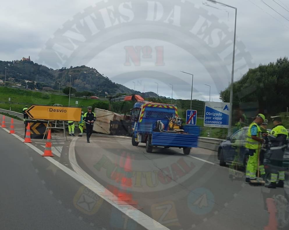 Camião tombado na A16 no acesso a Colares